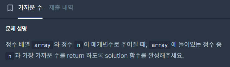 제가 쓴 코드를 설명해 보자면 우선 첫 번째 for 문을 돌려서 주어진 정수 n과 그 요소들의 차이를 절댓값으로 closer 라는 배열에 넣어주었습니당.