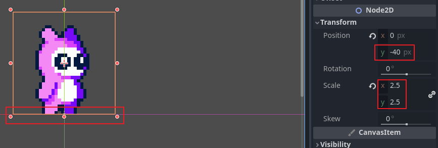 요기서 이미지 발 끝을 맞춰주기 위해 화살표 방향키(up)를 이용해 주었구요! Position y 가 -40 이 되면 됩니다.